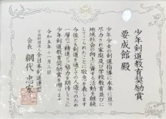 ![]() 東京都少年剣道奨励賞受賞 R6.1.6 |