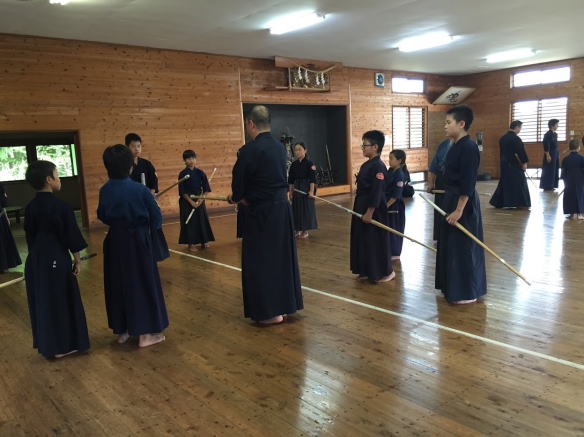 | 夏合宿(H28.8.20.21) あいにくの雨模様の中、H28年度の夏合宿が今年も北辰館八ヶ岳研修所で行われました。今年は集合場所に宝泉寺駐車場をお借りしていたため、マイクロバスも広い屋根の下に待機でき、大雨も大きな混乱なく集合ができました。駐車場のご提供をいただき、F住職様、誠にありがとうございました。 さて、今年の合宿は、通常よりも出発時間を早め、八ヶ岳に午前中着き、木刀による剣道基本技稽古法をしっかり学び、20日当日の稽古に厚みを持たせた稽古内容にしました。先生方も要成館のベテランの先生方が参加し、各学年に分けて理解力を高めて稽古ができました。先生方が多くいることも、要成館の強みであり、八ヶ岳の道場いっぱいに広がって活気あふれる形の稽古でした。 昼には北辰館自慢の美味しいカレーライスをオカワリして、食休みを挟み、前半は形のおさらいを集中稽古し、いよいよ防具をつけての稽古が始まります。 体操から基本の素振り、面をつけての基本打ち先生方にかかる稽古を行い、最後は竹刀を2本持っての素振りで本日の稽古をしめました。 夕方からは、ホテルのプールに場所を移し、クールダウンとお楽しみの一石二鳥のプール遊びを行い、稽古時よりも生き生きと声を出して遊ぶ姿に、もっと遊べ!もっと疲れろ!と心の中で叫ぶ私でした。(早く寝てくれるので) 夜は豚カツ定食と、これまたお代わり自由!子供たちもペロリと平らげ、お楽しみの花火大会にと思いきや、肝試しがしたいとの申し出に、先生方がまかしとけと言わんばかりに夜道に隠れて真っ暗の道を二人一組で行く即席の肝試し大会が開催されました。なぜか右手に水鉄砲を持っていくK先生、あとで何も関係ない近所のご老人を射撃し、笑って済ませたことも良い思い出として子供たちの記憶に残ることでしょう。 この時間、奇跡的に雨はやみ、肝試し大会の後は、恒例の花火大会です。Fさん・Tさんのご厚意により花火を提供していただき、雨上がりの夜空に光のシャワーを描き出し、子供たちの笑顔を映し出しました。不思議なことに、この花火大会が終わると同時に止んでいた雨が再び降り始め、八ヶ岳の空も子供たちにご褒美をくれたような、そんな夜空でした。 消灯時間を30分遅らし、夜は大人の反省会! 子供たちよ、早く寝るのだと思いつつ30分もしないうちに夢の世界にいざなわれるのでした。 さあ、これからは大人の時間だ!夜に到着した、Y先生も合流しパワーアップで反省会が始まっています。 ん?何かおかしい、あぁ〜?めまいがする。なんとここにきて、疲れが出たのは子供だけではなく、私もでした。そんな殺生な。命の水を飲むたびに目の前がクラクラ。美味しいつまみも、冷えたビールも受け付けず、一番に切り上げて寝るのでした。 翌日の6時。 恒例の吉井会(笑)!二日酔いも何のその、気合いの稽古が始まります。今年は7名の侍が名乗りを上げて、朝食までの1時間稽古を行いました。 え〜と、私は、毎年K先生とお散歩組です( ´∀` ) 昨日のめまいがうそのように、すがすがしい朝を迎えました。 子供たちは6時集合で、散歩と素振りをして、朝の空気を体中に取り入れ、朝食もしっかりと食べて、食休みからすぐに稽古を始めます。 まずは、級審査を実施しそれぞれが今できる剣道をしっかり披露、また、木刀による剣道基本技稽古法も正しく行い、それぞれの審査を終了しました。 残りの時間は、いよいよ合宿の仕上げとなる稽古です。先生にかかって稽古します。この合宿で、誰一人脱落者が出なかったことが子供たちの自信となったことでしょう。最後は竹刀2本持っての素振りでしめて子供たちもやり切った表情です。 夏の合宿はいつも子供たちが楽しみにしている、要成館のビックイベントです。先生方や保護者の皆さんと親睦を深め、子供たちの意外な一面や成長を感じることができる貴重な機会です。 また、残念ながら来ることができない保護者の方々や先生方も、事前準備や差し入れなど、様々なご協力をしていただいて、この素晴らしい時間を得ることができました。 きっと来年も夏合宿を行うと思います。皆さんの参加をお待ちしています。また、いろいろとご協力ありがとうございました。 ![]() 昼食のカレーを美味しくいただきます ![]() 木刀による剣道基本技稽古法をしっかり稽古します ![]() 猿山 運転ありがとうございました ![]() 夕食は豚カツ定食 ![]() 猿山2 ![]() 朝食前に形のおさらい ![]() 級審査 しめの千本素振り ![]() 稽古終了! 帰る前に合宿所にて記念撮影 ![]() ホテルで昼食バイキング |