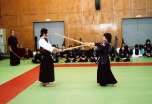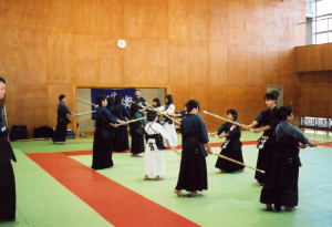 | 平成18年12月9日(土)10日(日)において,八王子市の高尾の森わくわくヴィレッジにおいて冬合宿が行われました。 合宿参加人数も31名と防具をつけている者はほとんど参加し,朝の8時に集合し,移動距離も少なく,9時30分からは道場に集合して元気いっぱいの稽古を開始しました。 午前中の稽古は普段なかなか時間をとることができない日本剣道形の稽古をじっくりとおこない,1本目から3本目までの形を昌治先生の解説の下に丁寧で内容の濃い稽古がおこなわれました。また,この冬合宿では,昇級審査もかねているため,子供たちの真剣できちんと理解しようとする姿を感じることができました。特に初めて剣道形をおこなう子供たちは,ぎこちない動きながらも形をおぼえようと頑張っていました。普段使わない足運びや構えは子供たちに純粋な興味と課題をあたえ,休憩時間中に鏡の前で左上段の構えをとっては足の歩幅やバランス,木刀の角度などを変えて構え研究し,少しでも上手になろうとする姿勢が感じられました。 さらに,難関の3本目の突きに対する仕太刀の応じ方や打太刀の左右の自然体でのうけ方等お互いの組み同士で自主的な稽古を休憩時間中もしていました。 昼食はハンバーグカレー(おかわり自由)をたいらげ,おかわりをして午後の稽古に望みましたがこれが後々の悪夢に結びつくとは知らない先生方でした。(個人の名誉のため,夜の風呂場での件については・・・) 午後の稽古では,いよいよ防具をつけての稽古が始まり,体操・基本打ち・応用打ちと続き,休憩後に級審査がおこなわれました。 級審査は切りかえしと2回の実技審査でおこなわれ,それぞれが全力をもって審査にあたり,昌治先生は「実力差がなくなり一方的に攻撃したりされたりすることがなく,互いが充実した攻めと態度で剣道をしている。」と感想を述べていました。また,上級になるにつれて打突スピードや気合・打突前の仕掛け等内容のある非常に良い審査が見られました。 級審査実技の後は指導稽古がおこなわれ,先生に稽古をお願いし,充実した時間を過ごして初日の稽古を終了しました。稽古途中,昼食の食べすぎから便所に直行しリバースしている者がいたようですが,稽古前の食事の量はどのくらいが適正か身をもって勉強したようです。(笑) 稽古後は各自が部屋割りのとおり荷物を部屋に運び大浴場で入浴を楽しみました。広いお風呂に飛び込み騒いでいましたが,他にお客さんがいなかったため,「まぁ楽しくていいかぁ。」と注意もせずいたところ大問題発生,洋先生の怒鳴り声が女子入浴場の中まで響き,入浴中の女子も心配するほどの緊張が走りました。この件については昌治先生と洋先生の的確な判断と後始末により大事にいたらず,ホッとしています。 夕飯後はお楽しみ会をおこない,その後は少し長めの自由時間を消灯まで楽しみました。女子は一部屋に集まり,なにやらお菓子パーテーよろしくにぎやかに楽しんでいたのが印象的でした。男子は今流行のカードゲームやDSなどしてそれぞれが楽しく過ごしていました。9時30分に消灯となりましたがなかなか寝つけずにコソコソ話をして夜が更けていきました。 10日(日)6時30分起床し身支度を整え,12月早朝とは思えない温かさのなか30分の素振り稽古をおこない朝食前の腹ごなしをしました。朝食はパン食で普段ご飯を食べている者からは不満が出ていましたが結局サラダを残したりしているところをみるとご家庭での食事の苦労がみえてきます。 10日の稽古場は柔道場のため,当初は日本剣道形の稽古と形の審査に時間をさいて最後に素振り1000本で合宿を締めくくる予定でしたが,以外に畳が滑らないこと・思い切って踏み込んでも畳が吸収しかえって床より良い状態であることから,予定を変更し,形の審査後一般稽古を防具をつけておこなうこととしました。 形の審査は前日の成果か非常に良いできで,間違えても再度すると完璧におこない,それぞれがみんなの見てる前で緊張しながらも一生懸命おこなっていました。 その後の稽古も最後の力を振り絞りおこない,これで終わりかと思っているところで,1000本素振りの声がかかり,一同の大ブーイングの中,全員が輪になり無事1000本を振りきり,冬合宿の全日程を終了しました。 行き帰りは保護者の方の車で送迎され,この合宿がいろいろな方々によって支えられていることを感じながら横山市民センター前にて解散しました。 最後にこの合宿に際して,夜勤あけでありながら朝から稽古に参加していただいた佐藤先生をはじめ,忙しい中合宿に参加していただいた山口先生,さまざまな雑用とフォローに気をくばっていただいた加藤さんのお母さんとお父さん,見えないところで調整役を務めていただいた三浦さんや保護者の会の皆さんのご協力により,この合宿が無事に終わり,予想以上に成功させることができましたこと厚く御礼申し上げます。 この合宿の経験と思い出が子供たちの心にいつまでも心に残っていますように,そして少しでもまわりの人や友