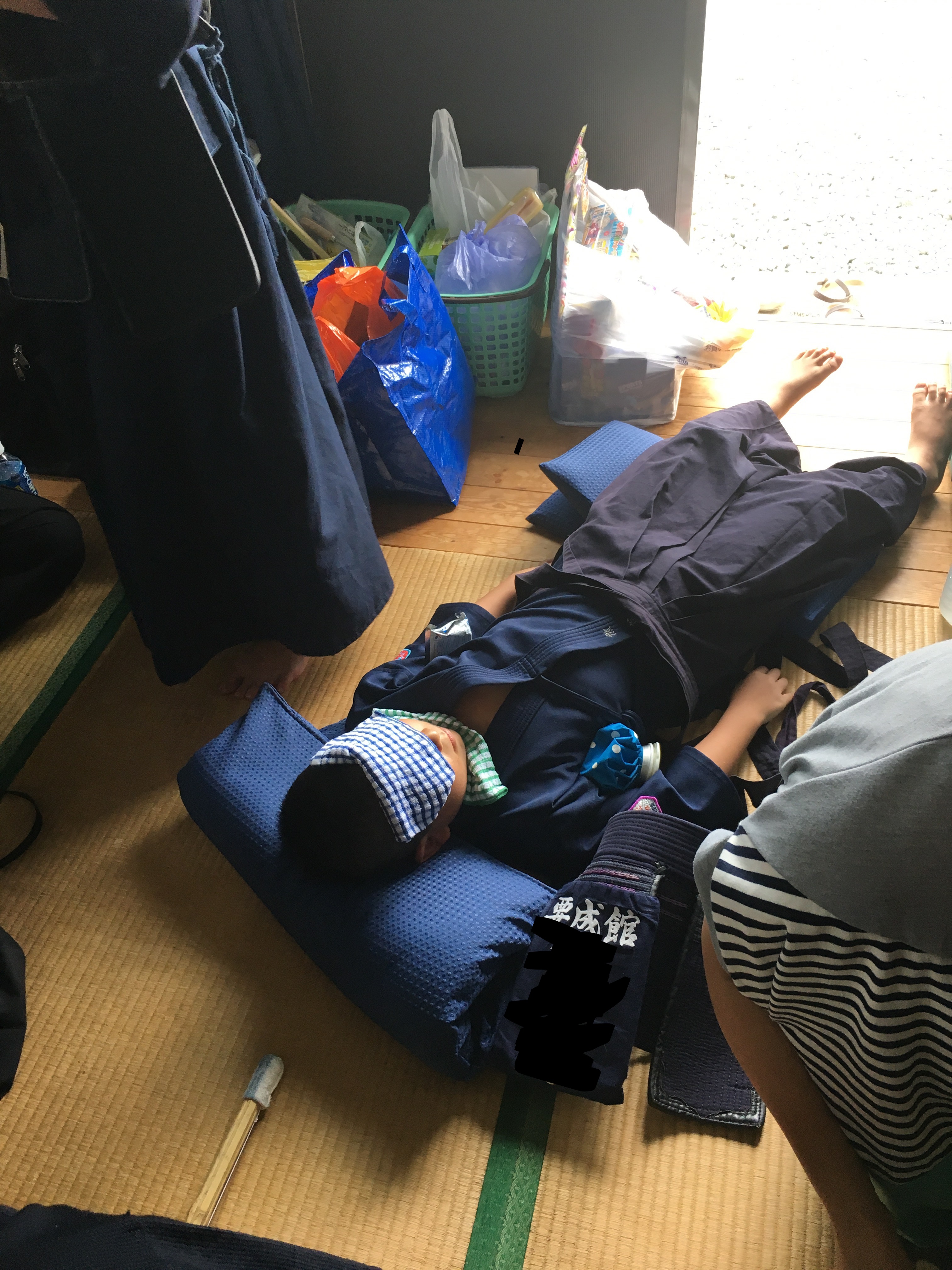 誰かダウンしている。あぁ~おかわりD君!合宿第1号のダウン、恐れていたリバースはしなかったものの残念な姿。しかし、彼はその後に稽古に復帰!ただの食いしん坊ではないところをみせました。